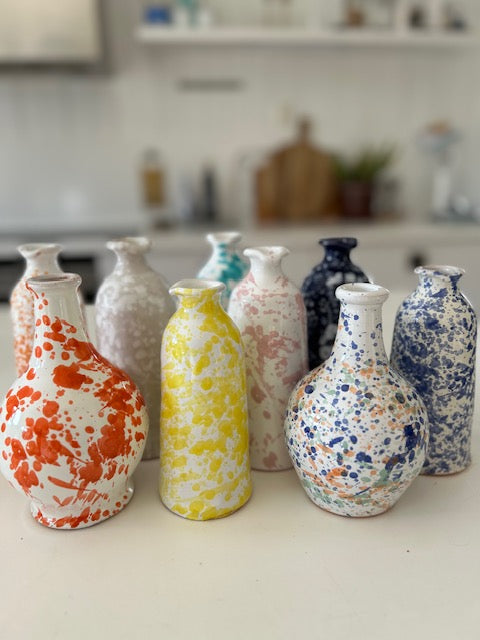 Vi har nå begynt å selge nydelig keramikk fra Italia. Olivenoljeflasker, tallerkener og vaser.
